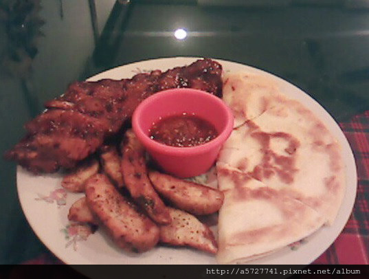 起司薄餅+炸薯塊+豬肋排+招牌辣醬