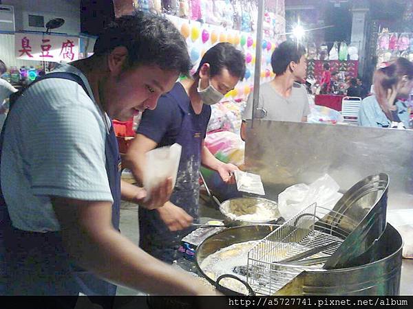 老闆把魚漿和水煮蛋在手上鐵盤來回包裹