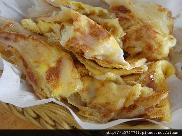 之後加入蛋後..仿蛋餅做法不情願的切小塊